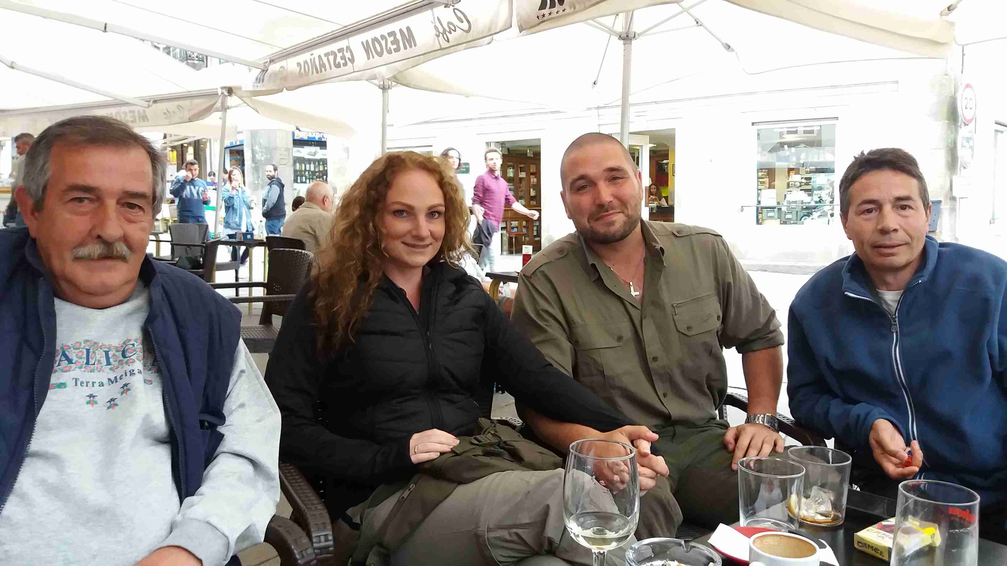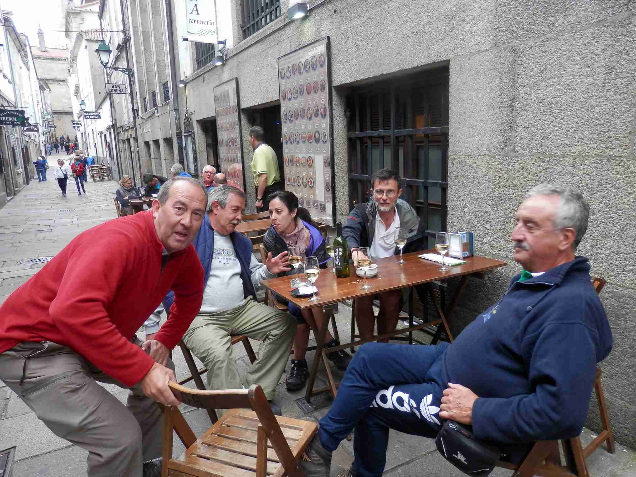 Mientras tomamos unos chatos se nos acercan una pareja de peregrinos alemanes, a los que hemos visto caminar estos días, y les invitamos a sentarse pues quieren hablar con nosotros.