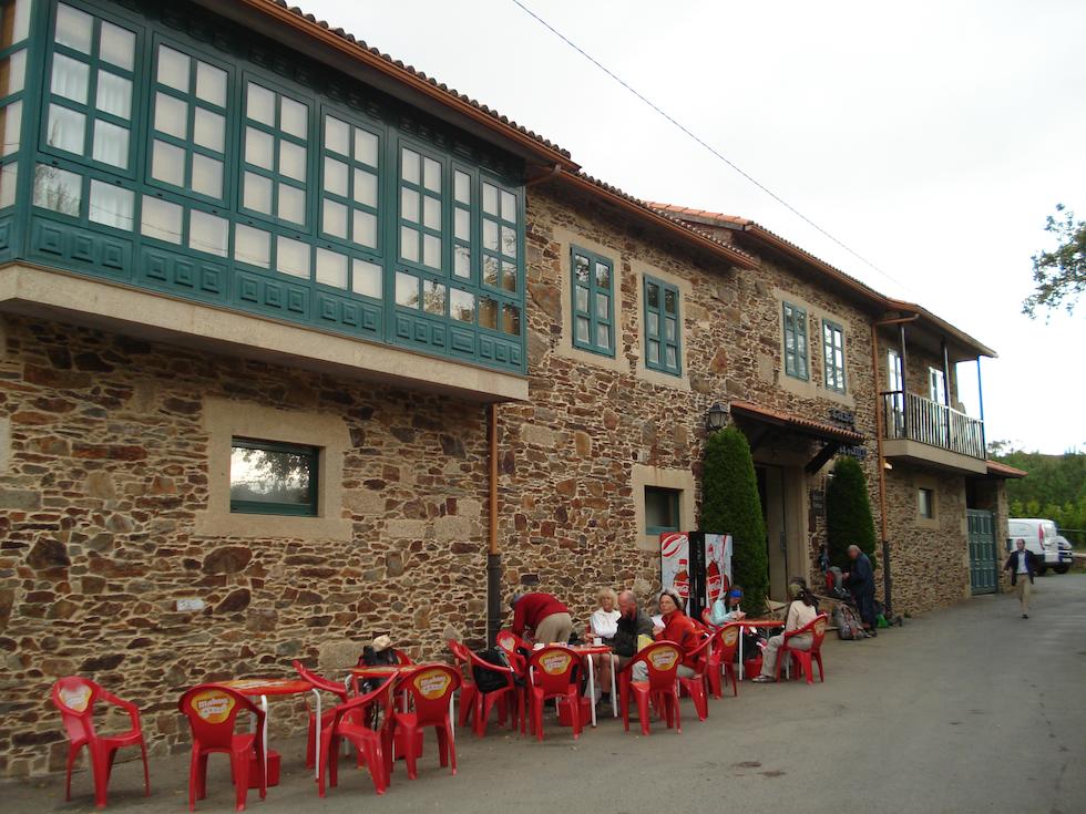 Llego a San Paio, perteneciente a la parroquia de Sabugueira y que consta de un templo de piedra. Paro en el restaurante Casa Porta del Peregrino, que le han remodelado completamente y está repleto de peregrinos. Mis compañeros van hacia Lavacolla con intención de parar allí. Me esperan.