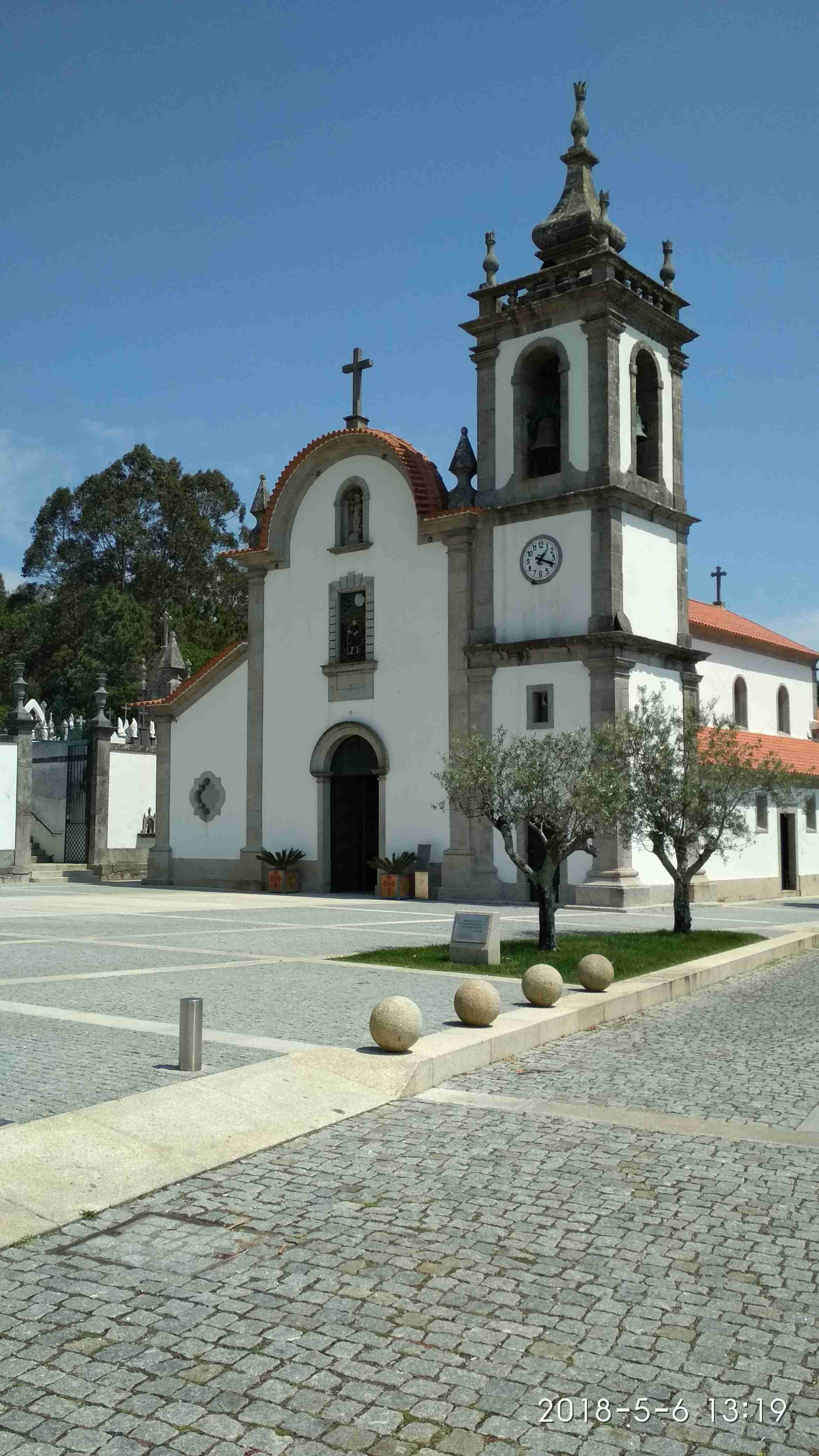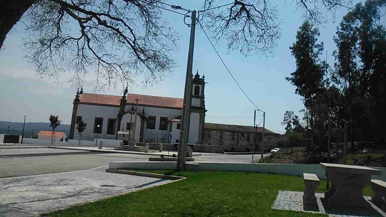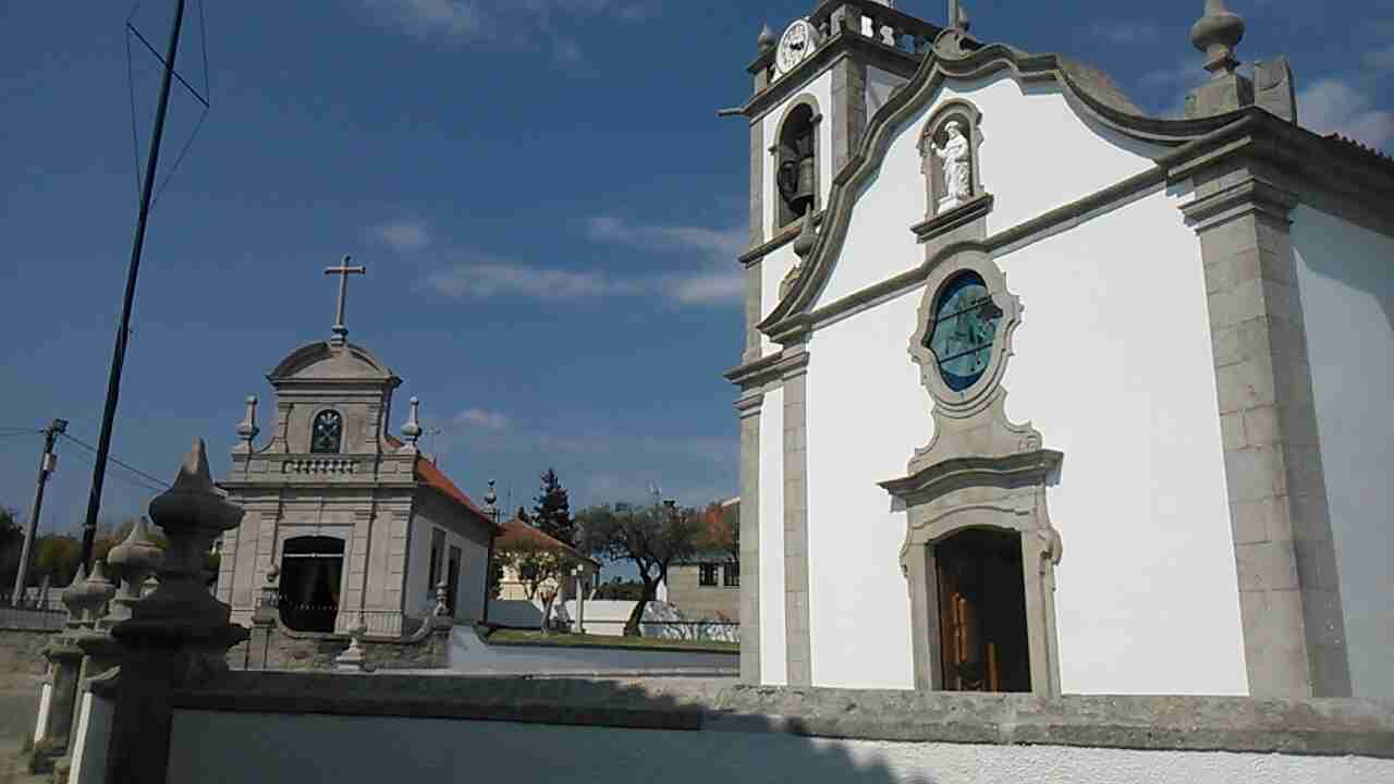 Puestos de nuevo en marcha entramos en la freguesía de Vila Nova de Anha. Llegamos ante la iglesia parroquial de São Tiago. Frente a ella, hay una pequeña capilla neoclásica, donde sellamos las credenciales.