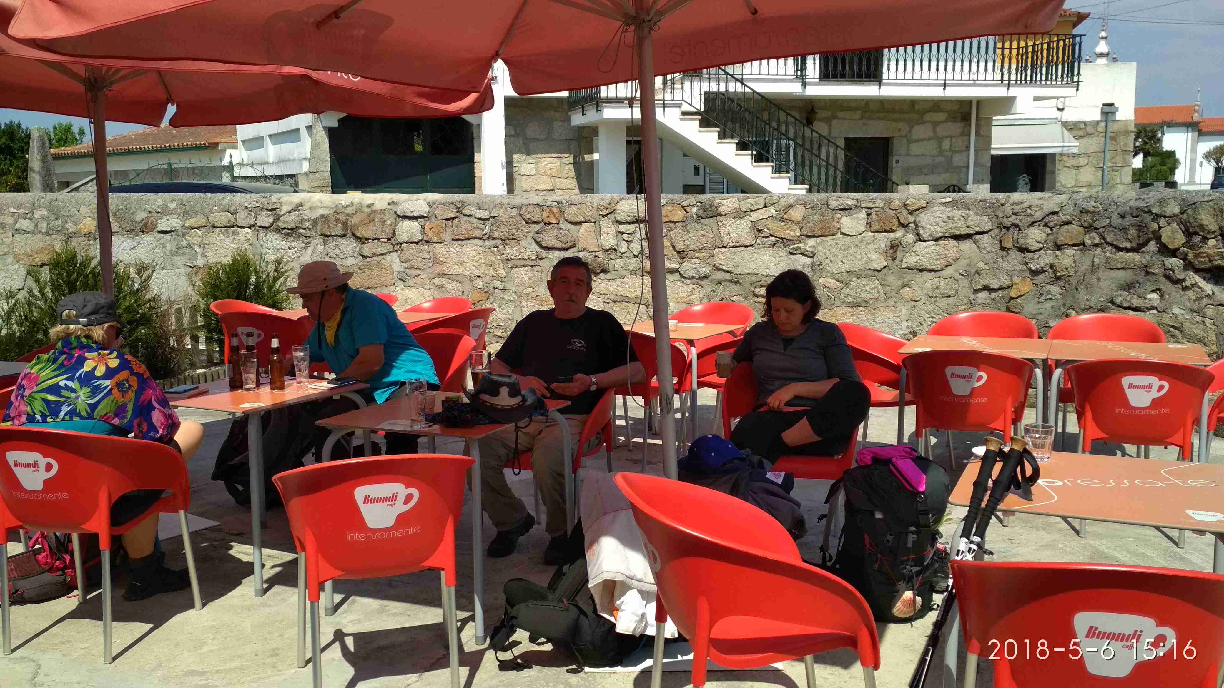 Hablo por teléfono con Primi. Se encuentra esperándome en un bar en Chafé, freguesia portuguesa, a kilómetro y medio aproximadamente. Cuando llego al bar hay varios peregrinos por allí a los que no conocemos. Sentados en una terraza comentamos las incidencias de la subida mientras tomamos unas cervezas. Poco mas tarde llega Francisca, la peregrina alemana que estaba rezando en la Iglesia de Santiago de Castelo do Neiva y toma asiento a nuestro lado. Un matrimonio de peregrinos alemanes se acercan a Francisca y la invitan a tomar un taxi hasta el próximo albergue. Ella se levanta, se despide, y se va con ellos.