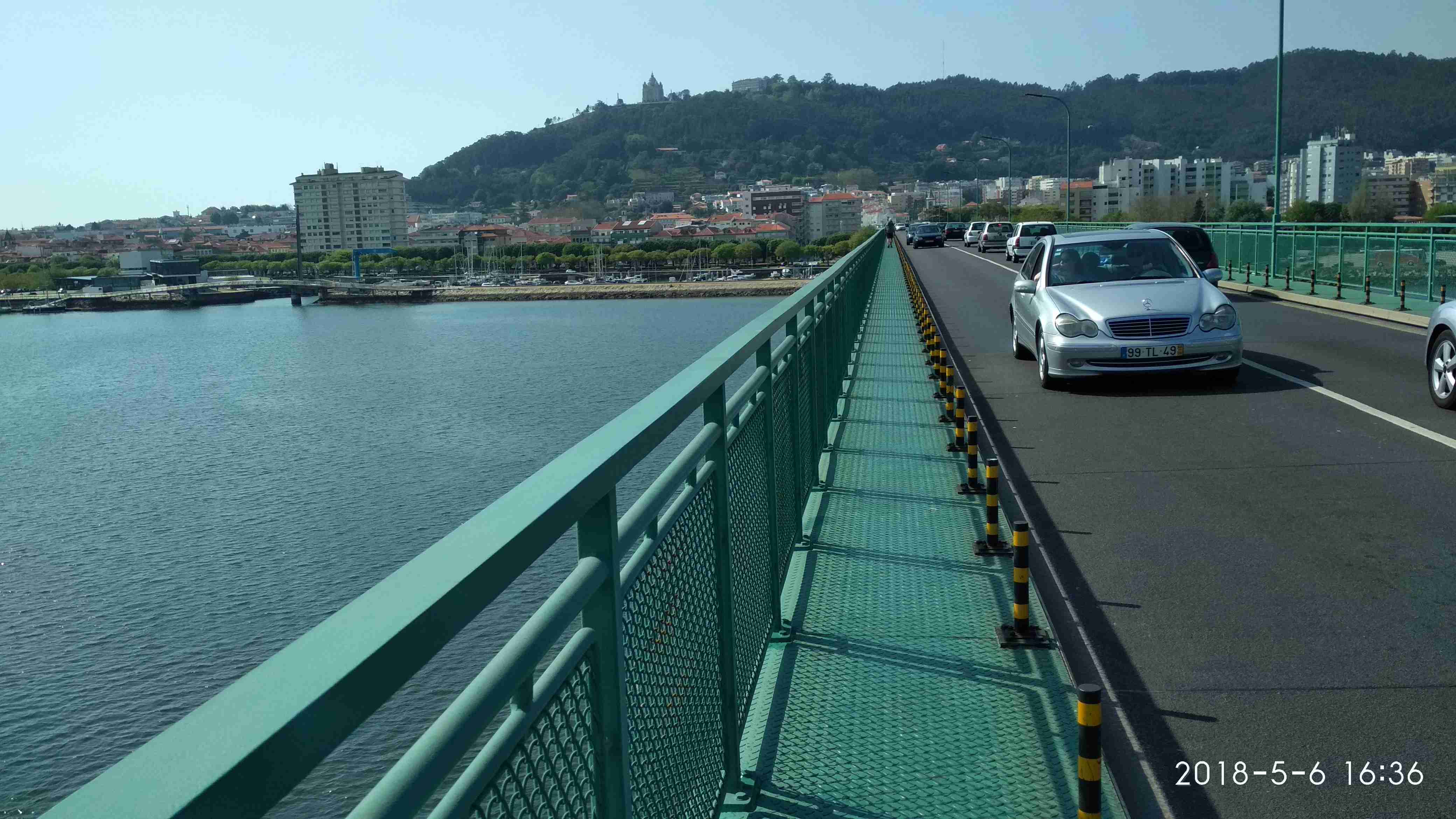 Dejamos atrás Darque y entramos, por fín, en Viana cruzando el río Lima por el puente Eiffel, de 560 metros de longitud; fue construido por el famoso ingeniero francés en 1878, diez años antes de la torre Eiffel en París. Por su tablero superior circulan coches y peatones, mientras que el inferior es para los trenes. Fueron necesarios mas de 2.000.000 de kilos de hierro para su construcción. Hasta entonces el paso del río se hacía con barcas.