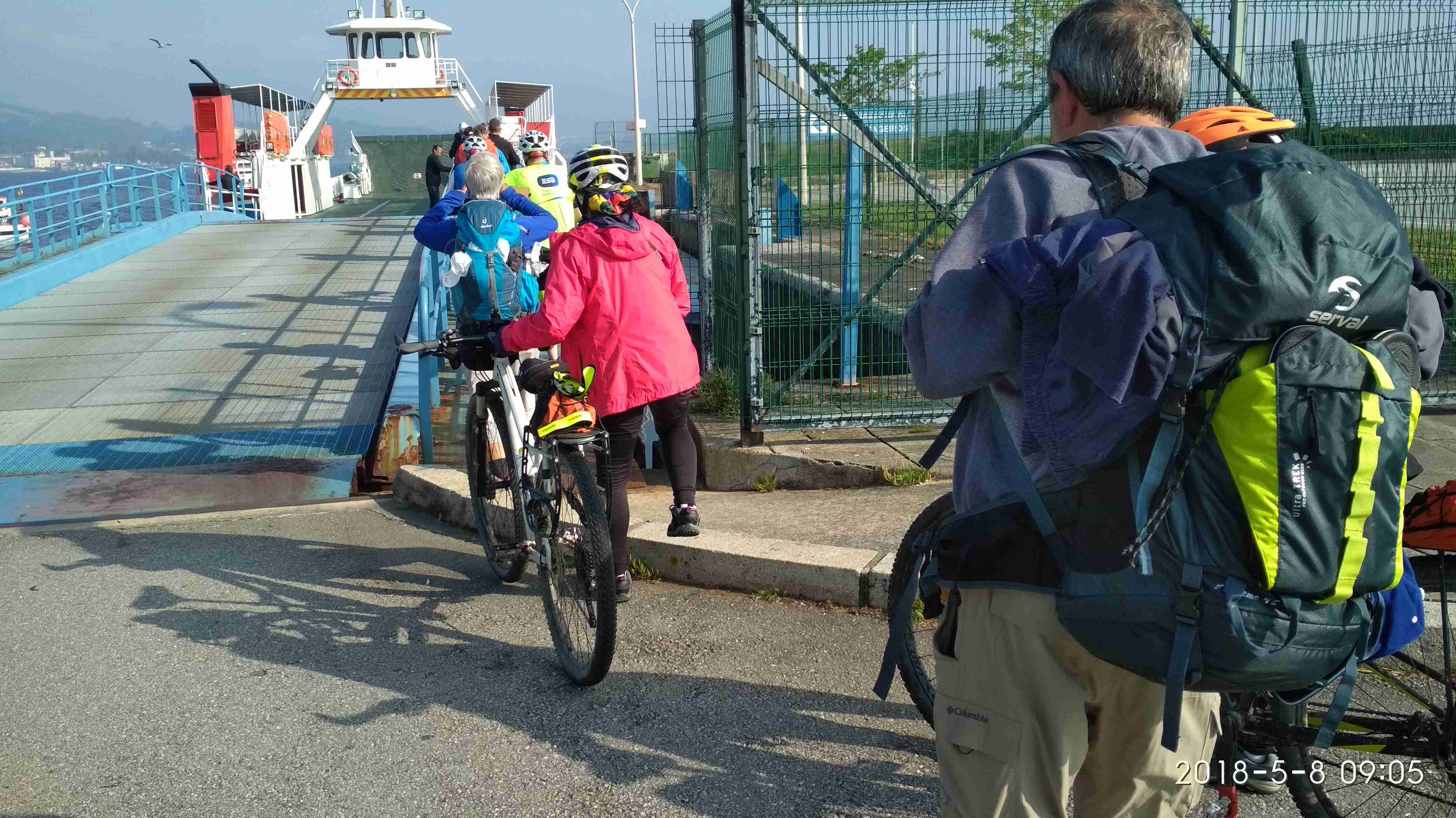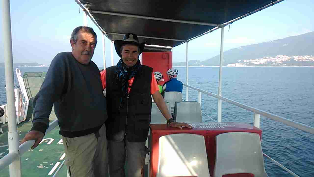 Aún tomamos otro café en la cafetería del mini-puerto donde estaba anclado el Ferry. Apenas 18 personas. No obstante, nos encontramos con las 2 peregrinas venezolanas con sus bicicletas y también con aquel compañero brasileño que aparecía y desaparecía donde menos lo sospechabas. En este caso iba a despedir a alguno de sus conocidos porque él parece que se marchaba hacia Valencia do Miño.