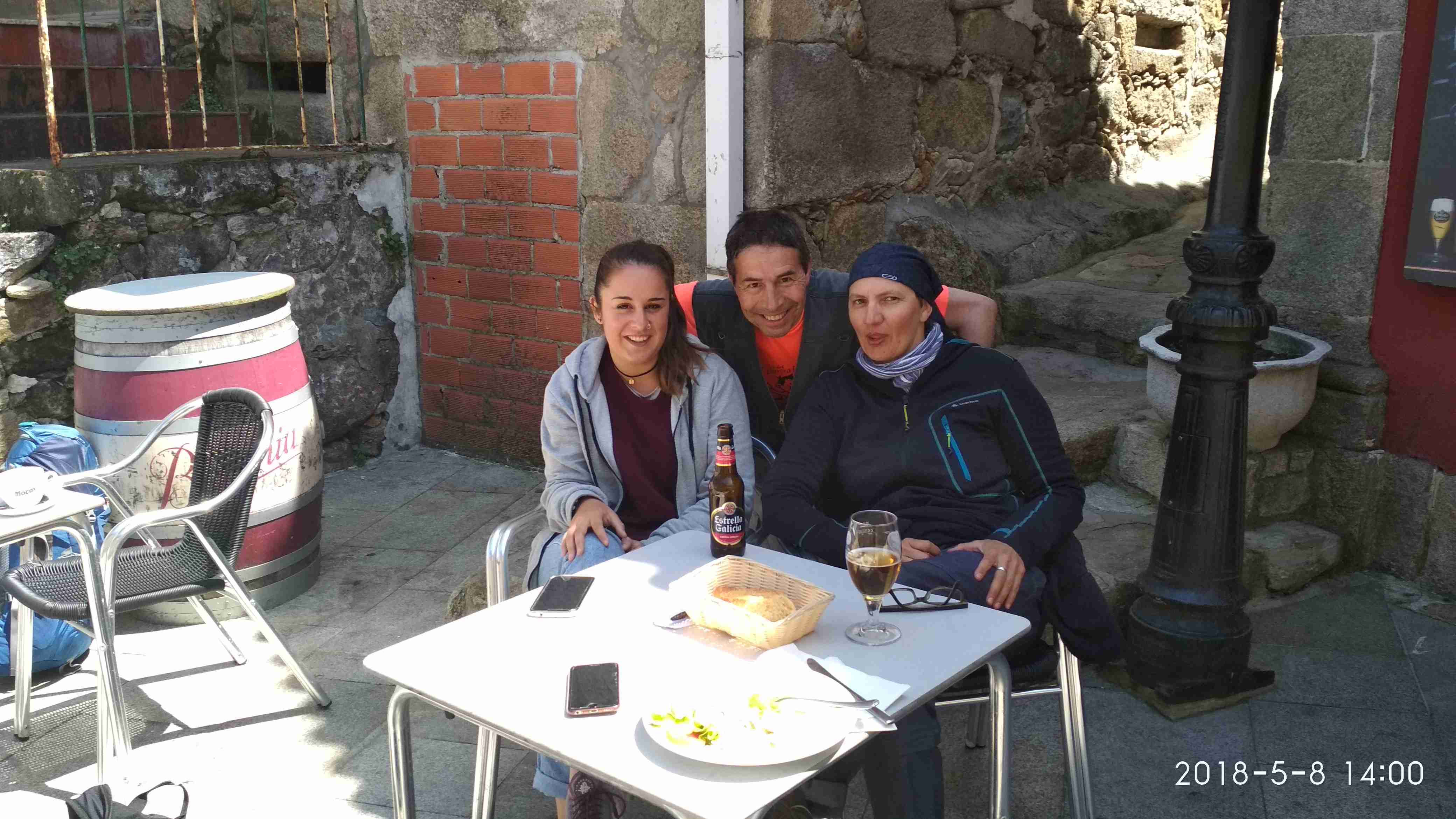 Nos detenemos en el Restaurante Casa Henriqueta con intención de tomar una cerveza y ver si podemos comer algo. En una mesa en la puerta tomaban una cerveza Jeanette y Sara, la primera, peregrina alemana, y la segunda, hospitalera de un albergue privado en O Serrallo llamado "Camino portugués", con quienes Primi entabló conversación.