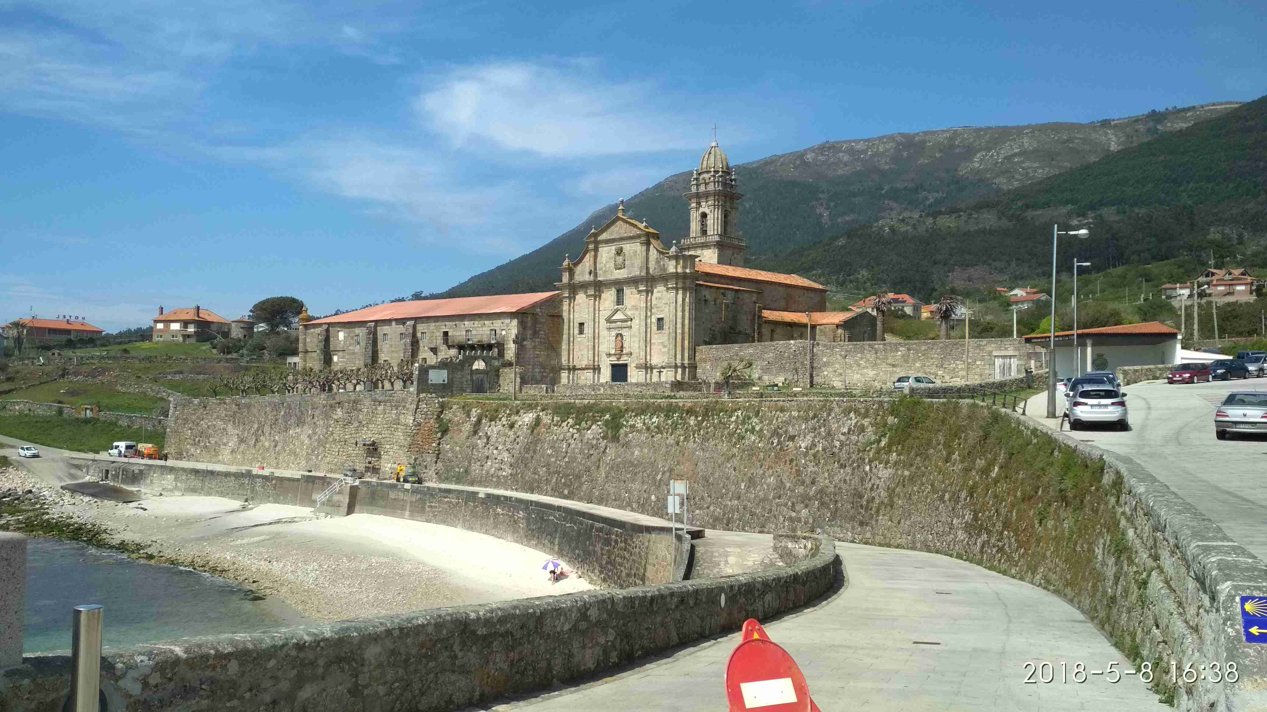 Tras la comida nos despedimos de la peregrina alemana a quien acompañaba ahora un peregrino aragonés y bajamos la rampa que nos acerca al Monasterio de Santa María de Oia. Fundado a mediados del siglo XII, fue incorporado a la orden del Císter en 1185, y presenta elementos románicos, renacentistas y barrocos. El edificio está hoy en manos privadas y sólo se puede visitar la iglesia, en horario de misas o bien solicitando la llave en el bar-estanco que está a unos 80 metros.