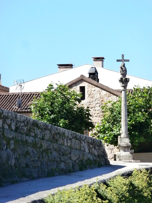En unos metros entramos en el barrio O Arrabal, con casas de piedra y algunos bares y restaurantes; pasamos ante el cruceiro de la Centinela, del año 1764.
