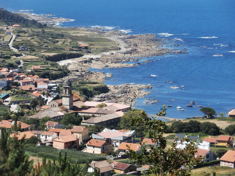 Una vez en tierra, nos despedimos de la pareja de venezolanas, a quienes ya no volveríamos a ver, y nos pusimos en marcha por la montaña hacia A Guarda rodeando el monte Santa Tecla, al que no llegamos a subir. Adelantamos a un grupo de italianos que venía en el Ferry y fue la última vez que vimos a los compañeros del barco, excepto a una mujer alemana que nos tomó alguna foto y que veríamos en Santiago unos 10 dias después, mas o menos, y a la mujer canadiense a la que preguntamos el día anterior por el albergue de Caminha y que luego nos encontraríamos camino de Porto Mogas.