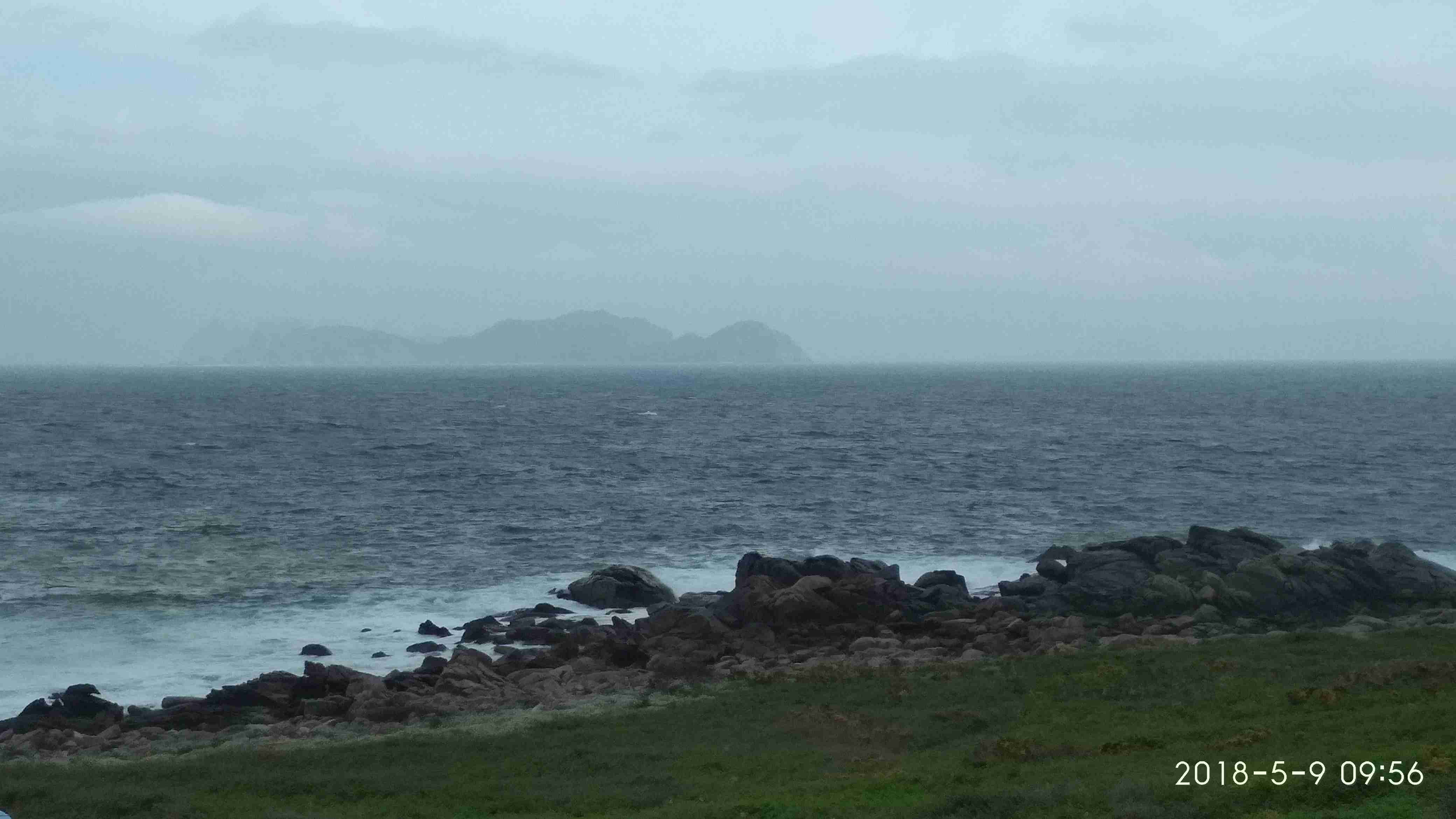 Aunque podríamos haber subido por los montes de Baredo, dado que la etapa se nos presentaba larga, decidimos continuar por un camino paralelo a la carretera de la costa. Pronto comenzamos a distinguir entre la niebla las Islas Cies que nos acompañarían durante gran parte de la etapa.