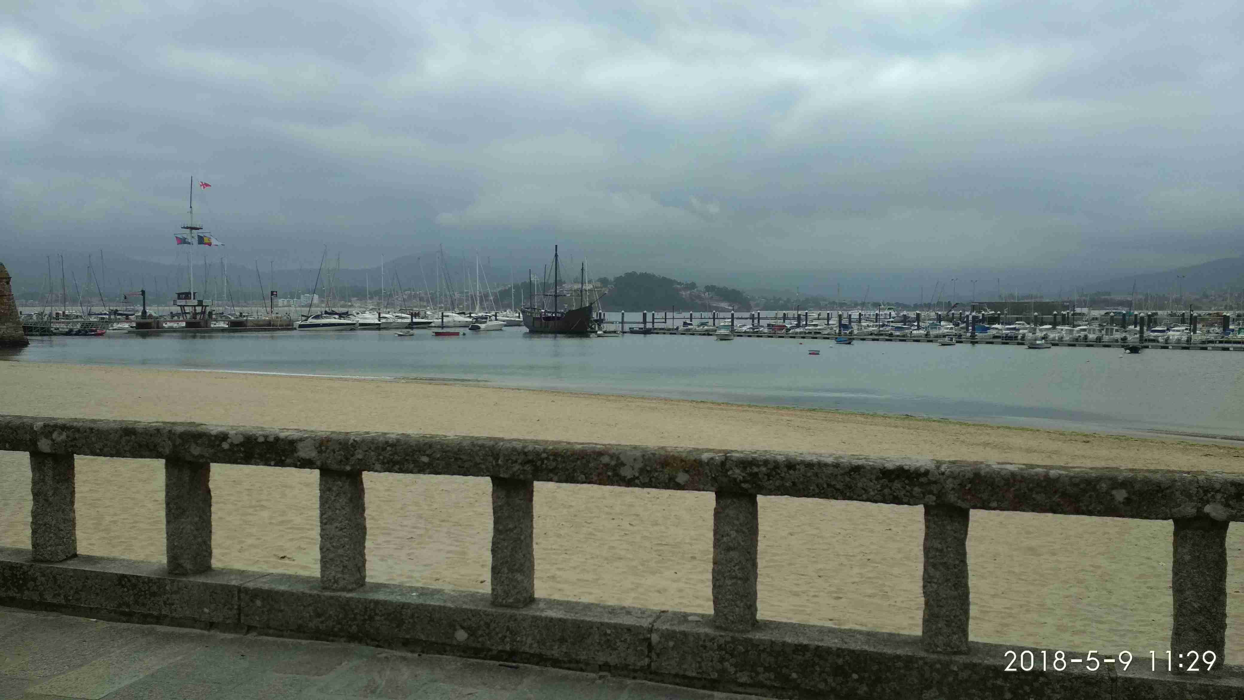 Ya llegando a la población, una amable señora en el camino nos indica que deberíamos meter nuestros piés en una pequeña playa (Praia da Concheira), a la entrada de Baiona, pues tiene el agua yodada y nos descansarían bastante.