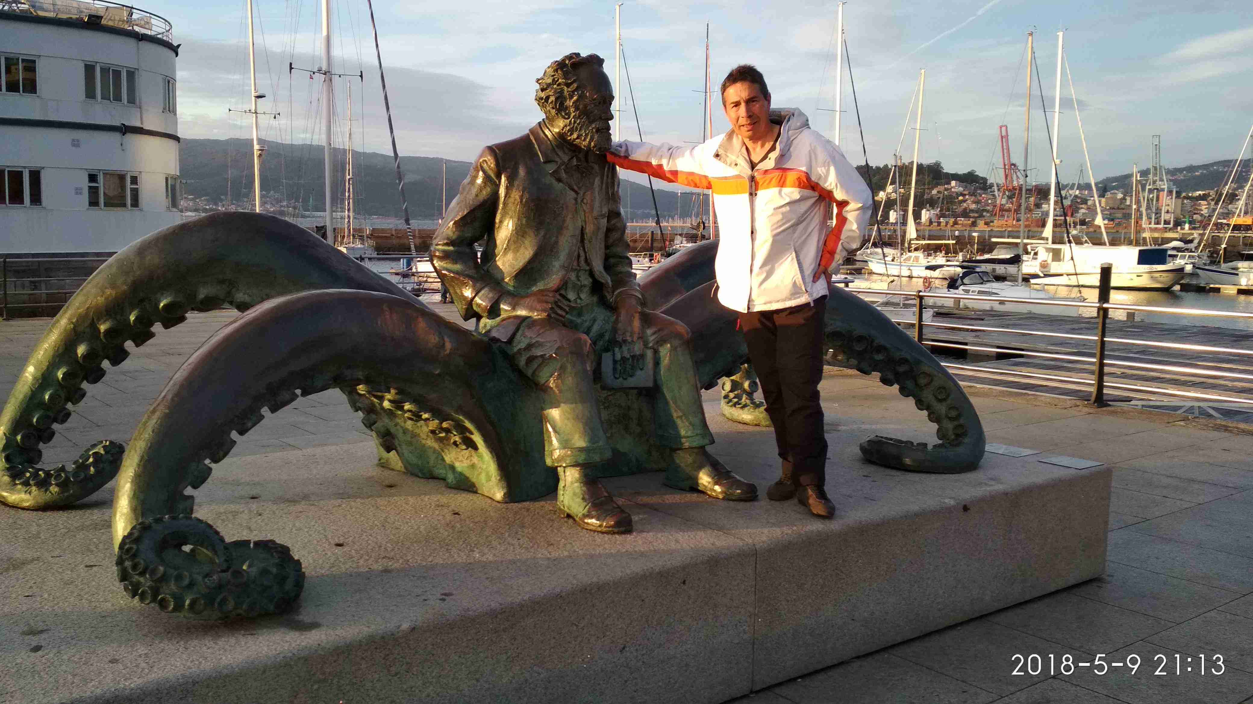 Mientras comemos comentamos que no queríamos cruzar la ciudad de Vigo andando, pues ya lo hicimos un año y nos resultó bastante tedioso tantos polígonos y el puerto sin fin. Así que, después de comer, buscamos una estación de autobuses y tomamos uno que en muy poco tiempo nos acercó hasta el centro de Vigo. Nos hemos ahorrado unos 12 kilómetros.