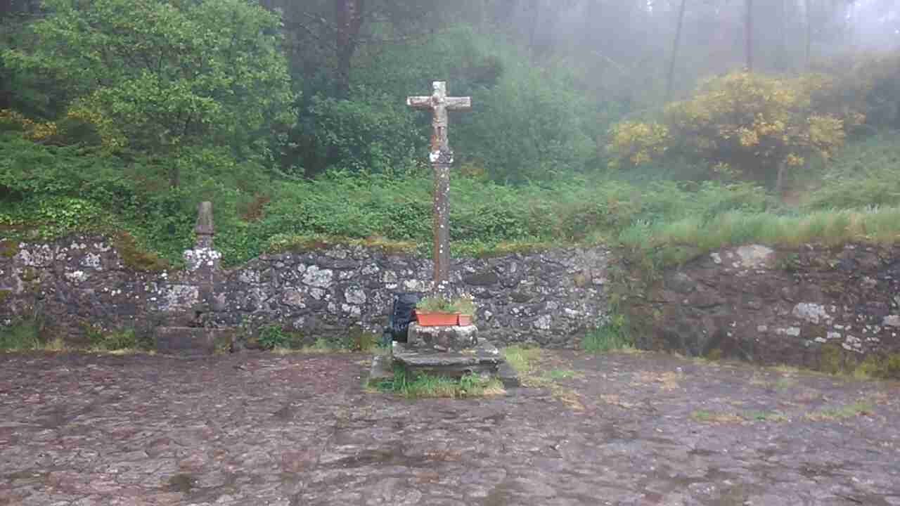 Paramos un momento en el Cruceiro de Morquintián, donde hay una fuente, y continuamos después de tomar algunas fotos.
