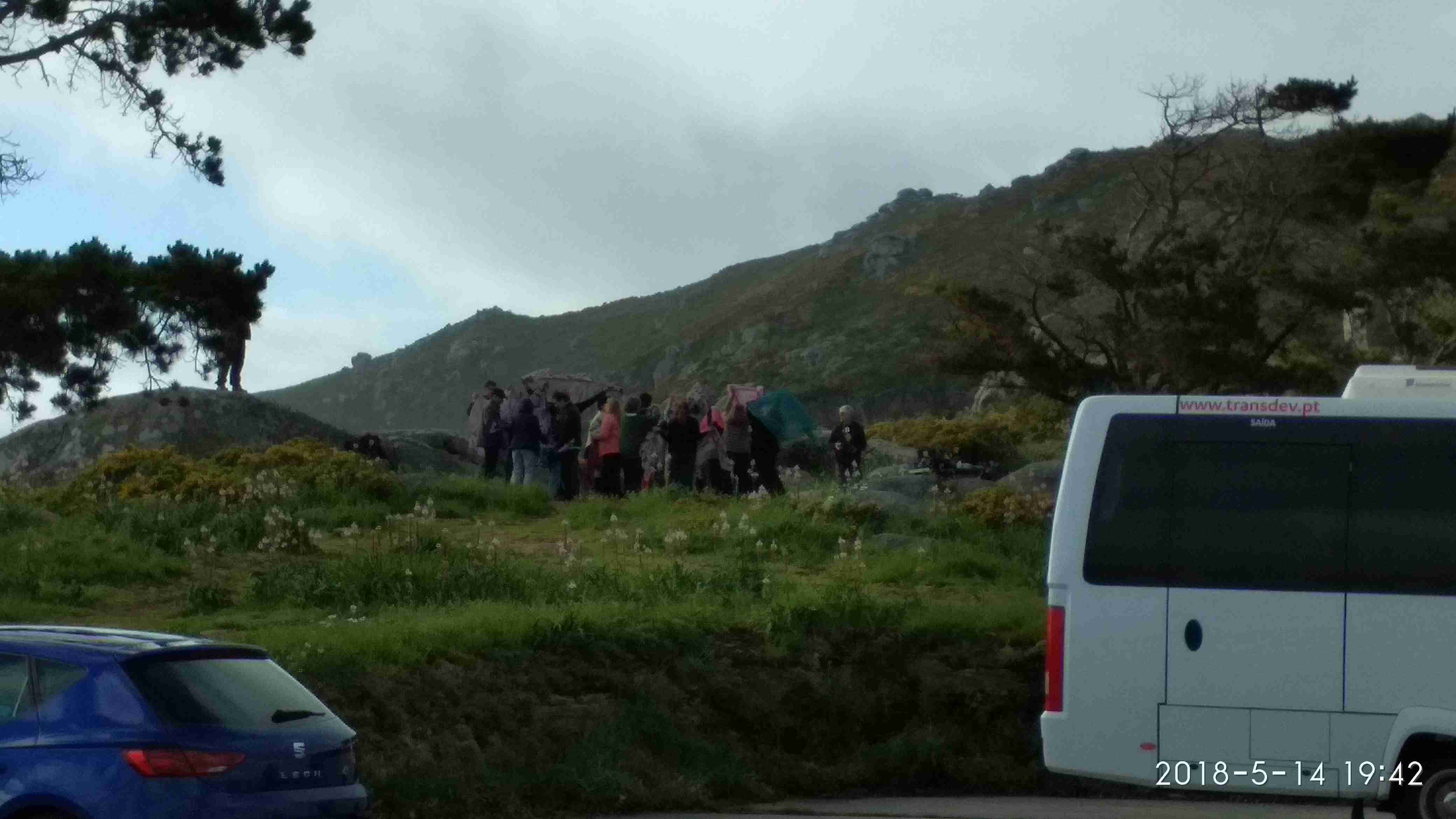 Según llegamos al faro vemos en el monte un grupo de 30 o 40 personas, en su mayoría mujeres, que, agitando grandes pañuelos parece que están celebrando algún tipo de ritual, aquelarre o no sabemos qué. Nos parece algo extraño.