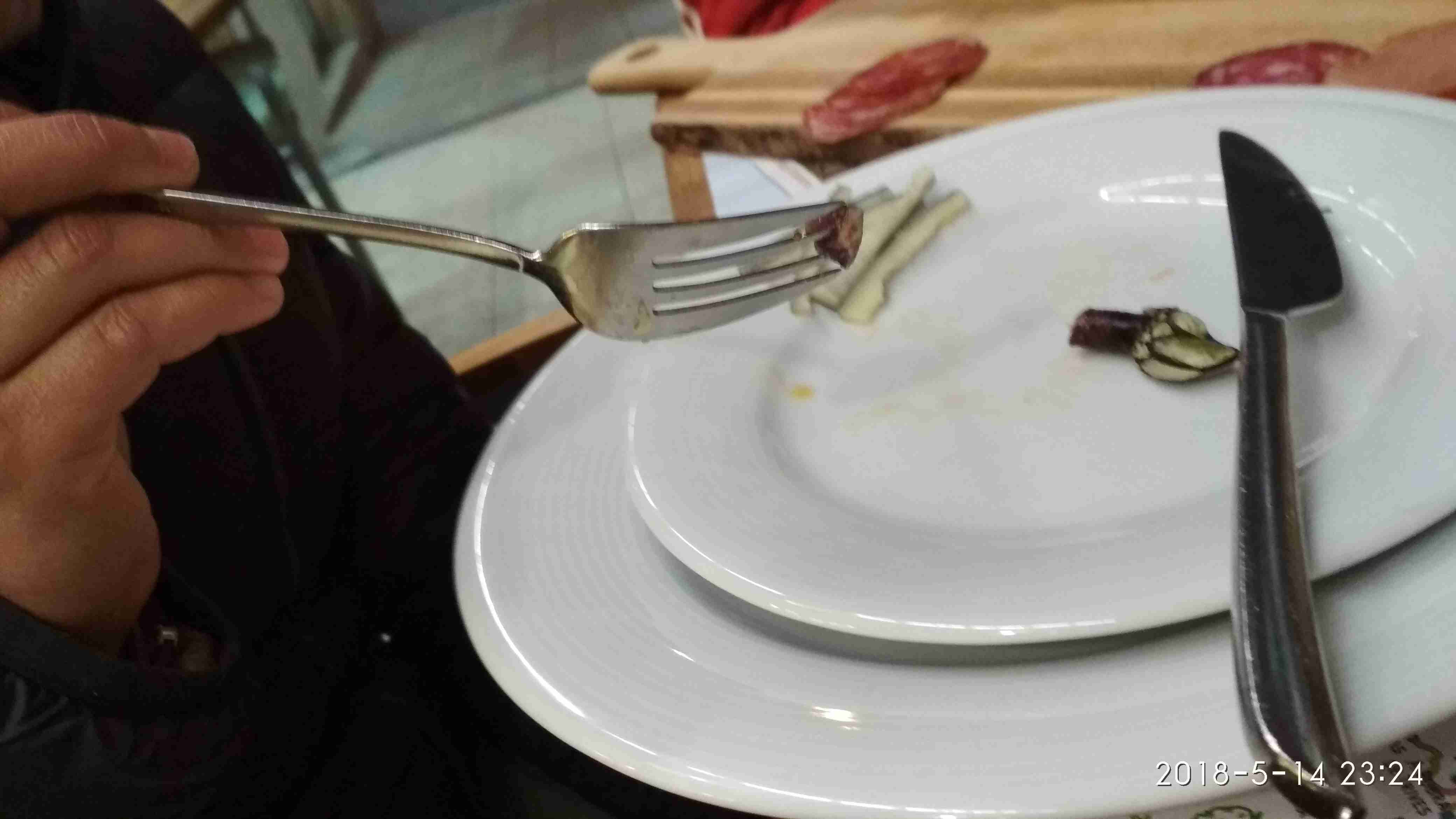 Como no hemos cenado ninguno, pedimos una ración de chorizo y queso y otra de percebes para acompañar los ribeiros. Parece que Azucena nunca ha comido percebes. La preparamos uno y, aunque la explicamos cómo debe comerse, ella se lo come cortándolo con cuchillo y tenedor, lo que nos hizo mucha gracia pues nunca antes lo habíamos visto.