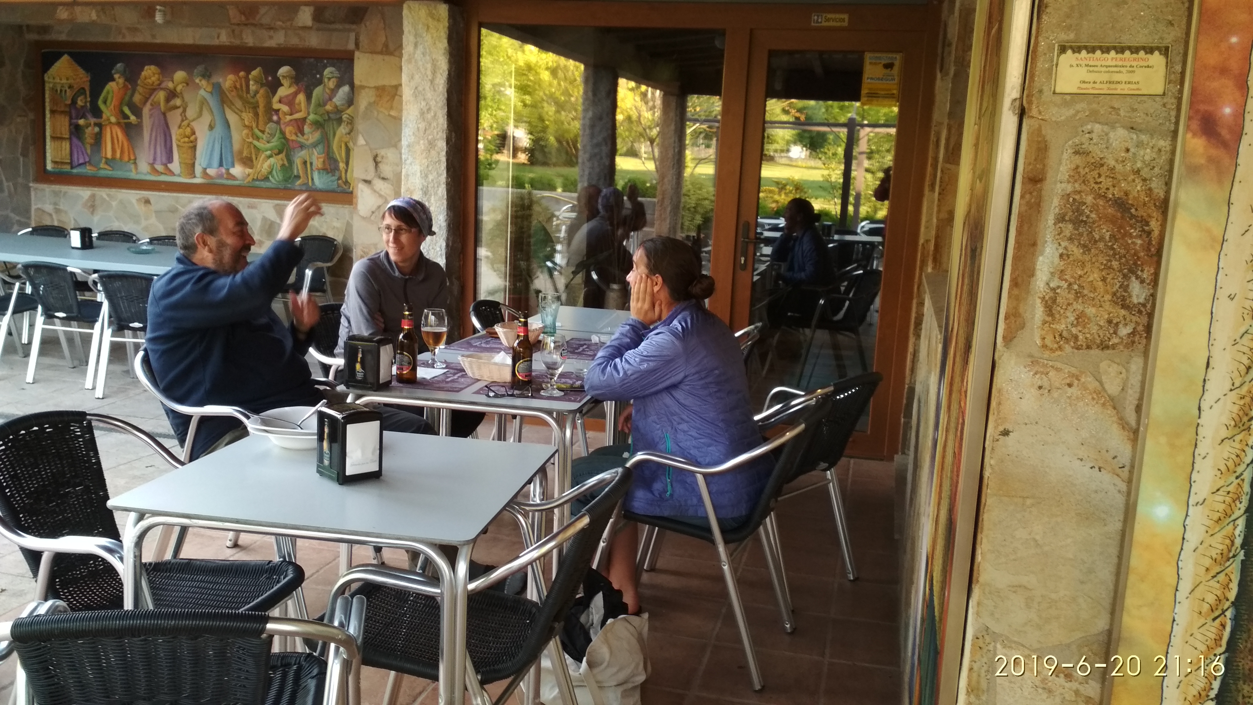 Cuando salgo para ir al museo ya aparece Primi con Andrea y le digo que me voy para allá; al poco rato viene él y nos tomamos un par de cañas porque lo que teníamos sobre todo era sed ya que el calor apretaba. Después de las cañas volvemos al albergue con objeto de darnos las correspondientes duchas y demás tareas del peregrino después de llegar.