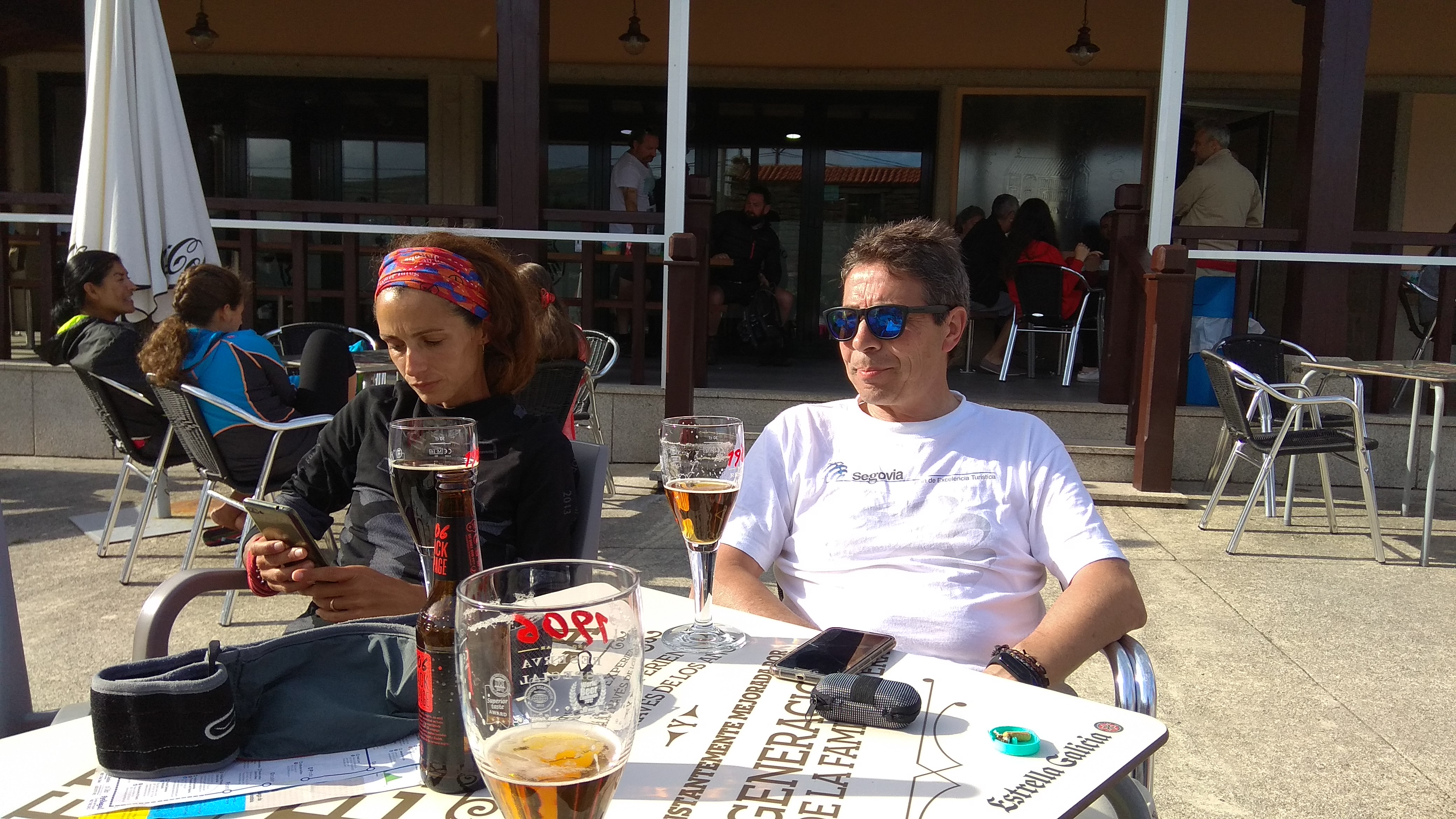 Por fin decidimos hacer una parada en un bar a la altura de Lago, después de subir un puerto de primera especial y volverlo a bajar. Descansamos un buen rato en el bar, resguardados del agua y tomando unas cervezas y un pincho de empanada de atún, junto a un grupo de escolares y sus profesoras, que hacían esta ruta como actividad complementaria.