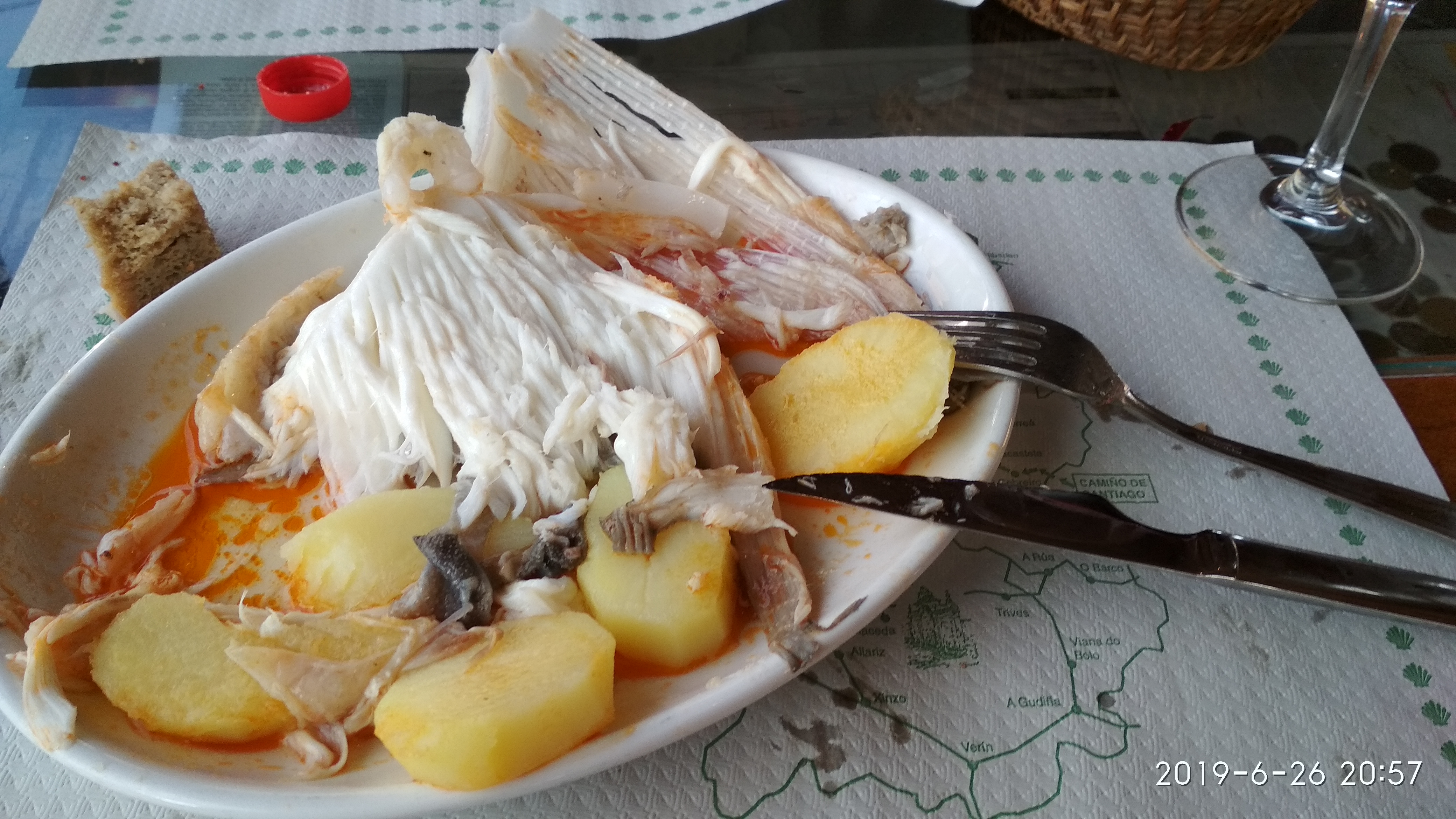 Nos quedamos a cenar, muy bien por cierto y muy bien de precio; un plato de caldo gallego y una abundante ración de raya que estaba buenísima incluido postre y café.