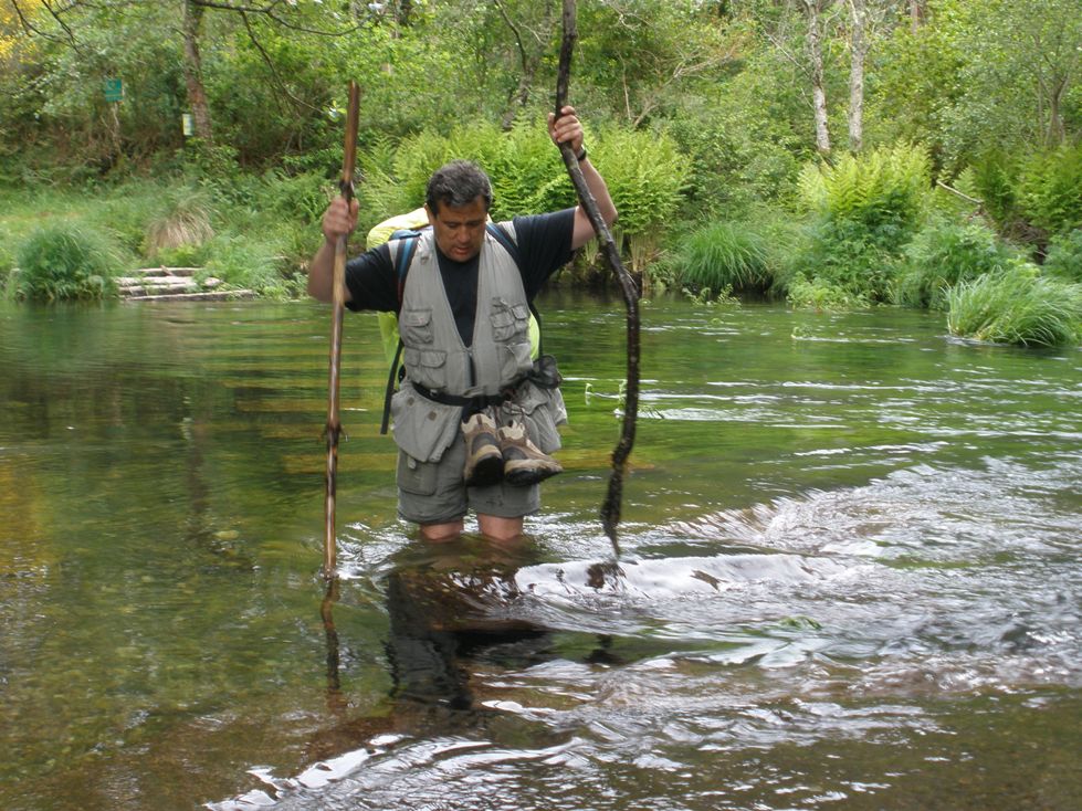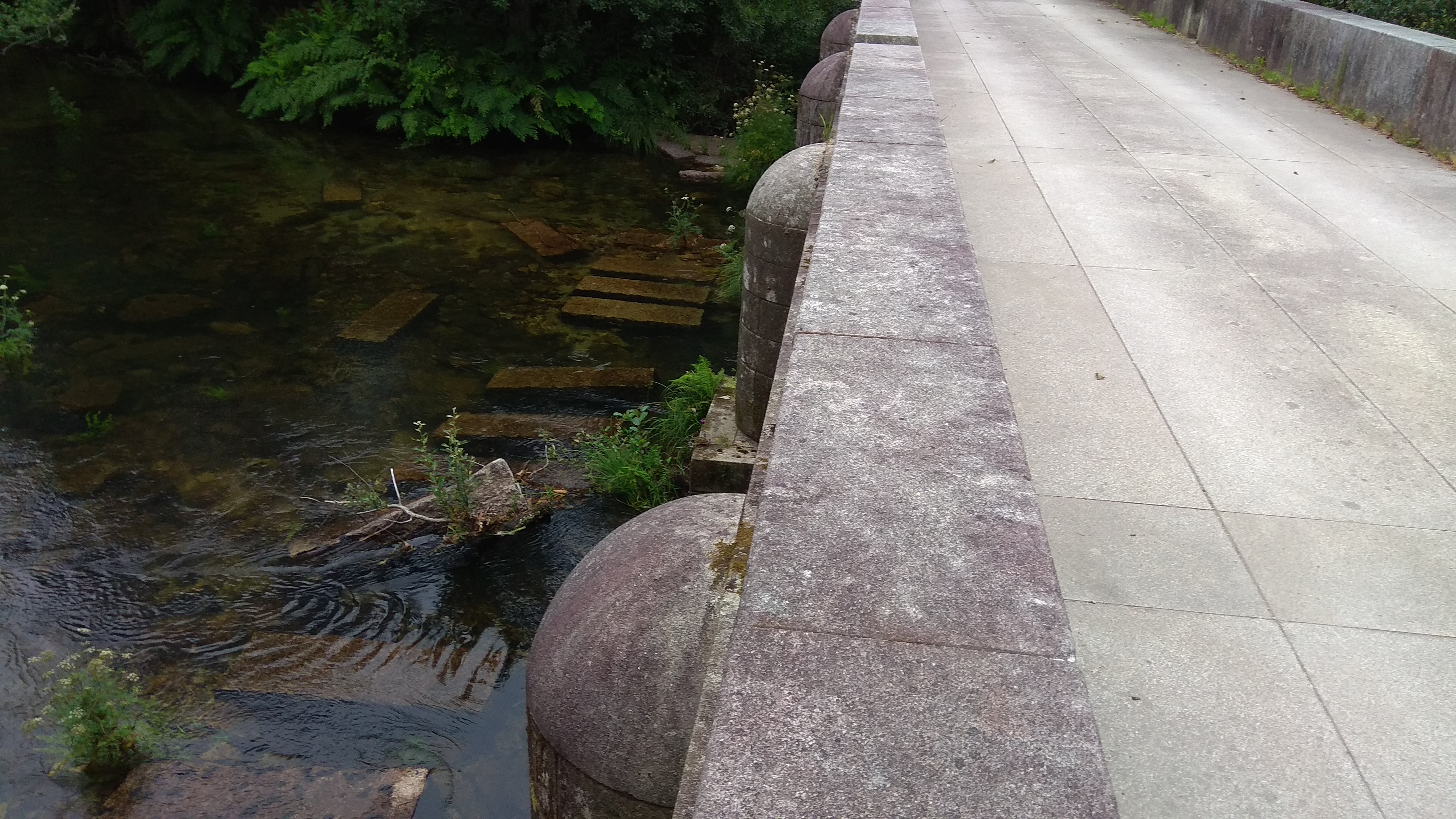 Puesto de nuevo en marcha llego al puente que se remonta a después del año 2010, pues antes teníamos que salvar el río cruzando por unas piedras donde era inevitable empaparte de agua. Ya nuestros compañeros Chema y Paco tuvieron ocasión de sufrirlo hace tiempo. Aunque, aparte de la satisfacción por su hazaña, se llevaron unos pies bastante aliviados del cansancio del camino, pues las frías aguas del Castro se convirtieron en el mejor masaje que podían imaginar. Cosa que no sucede desde que han construido el puente.