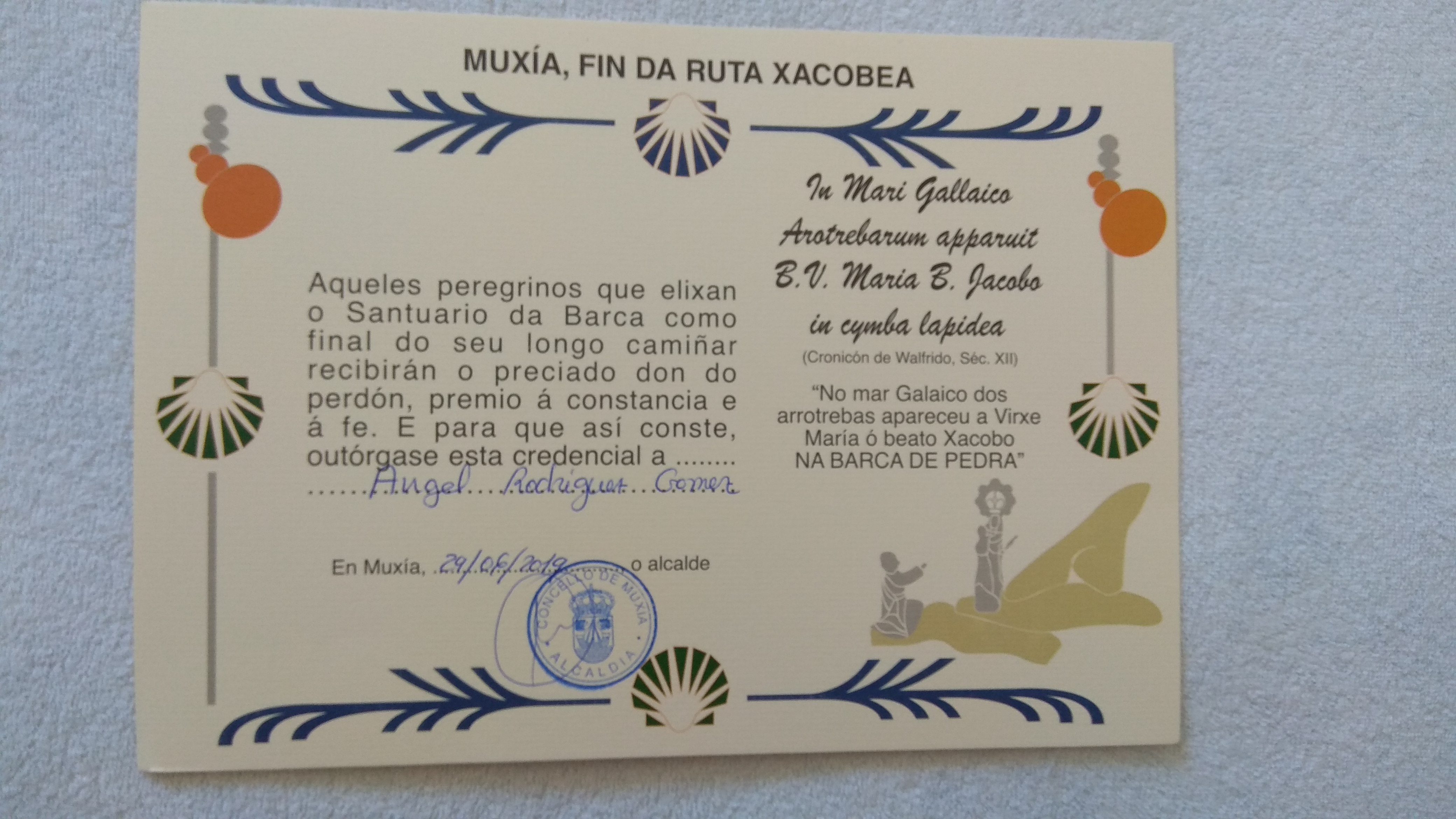 Mientras tanto, Ángel, después de tomarse la caña, se acerca a la Oficina de Turismo (estaba cerrada) y después se va a buscar el albergue "Bela Muxía". Una vez asignada cama y con la "Muxiana" en la mano, se va a dar la ducha correspondiente mientras espera mi llegada.