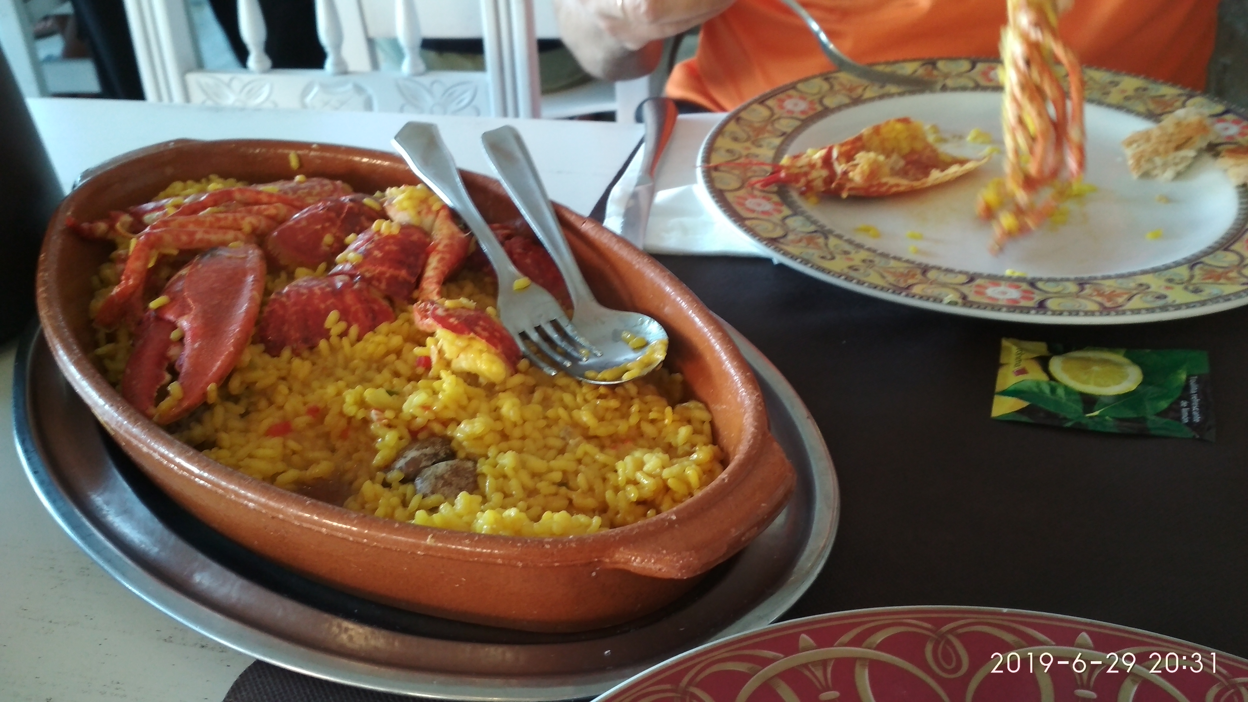 La verdad es que estaba muy bueno y el bogavante era bastante grande, pero nos cobraron a 30 euros por persona solo el arroz. Con el vino y entrantes salimos a algo más de 45 euros cada uno.