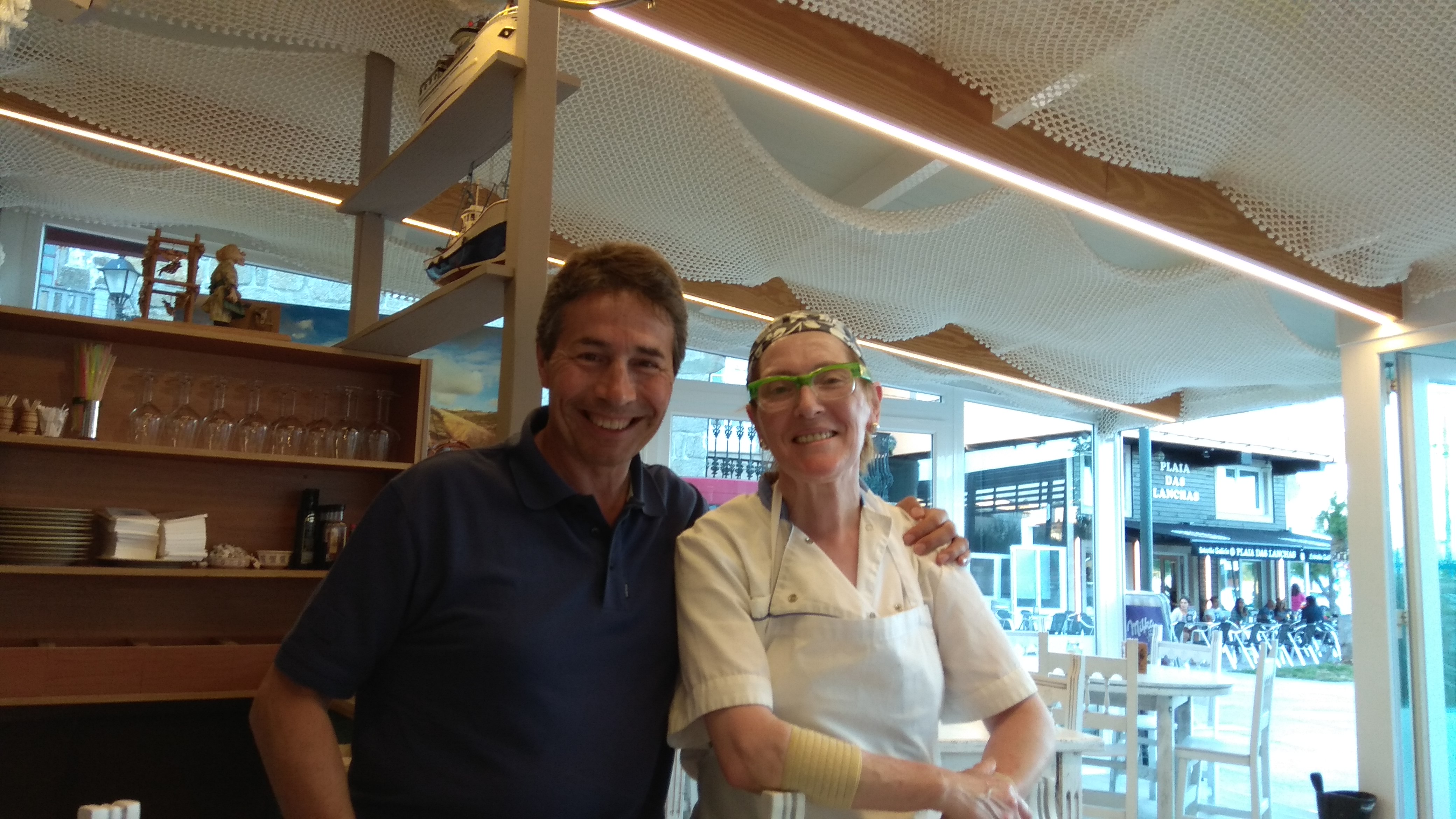 Mas tarde hicimos algunas compras, un paseo por el puerto de Muxía y, como cena, decidimos que nos íbamos a dar un homenaje de arroz con bogavante en el Restaurante A Pedra d'Abalar, donde saludamos a la dueña, María del Carmen, una gallega que hace años atendió a nuestros amigos y compañeros Paco Y Chema, y que el año pasado también la visitamos Michel y yo. Allí degustamos unas navajas y un arroz con bogavante que nos dejaron como nuevos