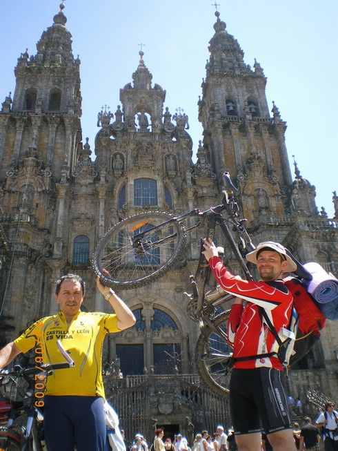 Josemi y Fernando celebran el fin del viaje frente a la catedral
