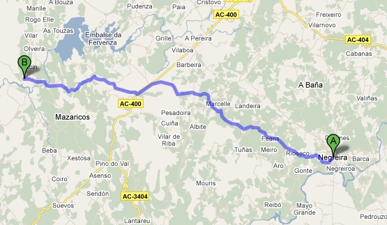 separa de Ponte Olveira, por donde salvaremos las aguas del río Xallas.