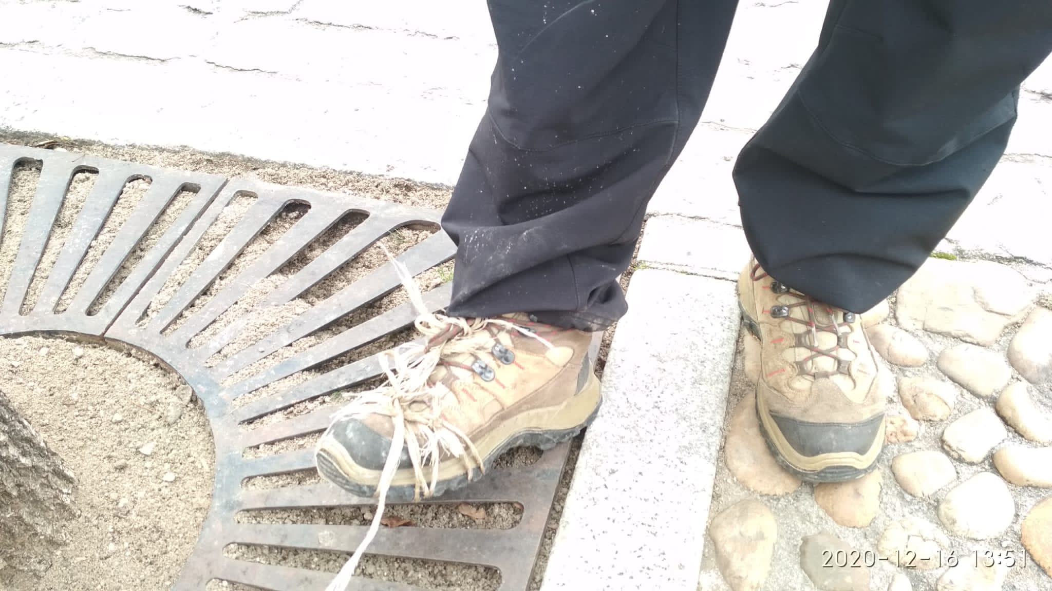 Paco viene algo rezagado haciendo un extraño ruido al caminar. Se le ha desprendido parte de la suela de la bota y la viene arrastrando en cada paso que da. Nos pregunta si no tenemos una cuerda para atarse la suela a la bota. Justo a nuestros piés vemos un cordón medio enterrado en la arena del que tiramos animados pues sale con bastante facilidad. Paco se ata la suela y continuamos hacia La Granja.