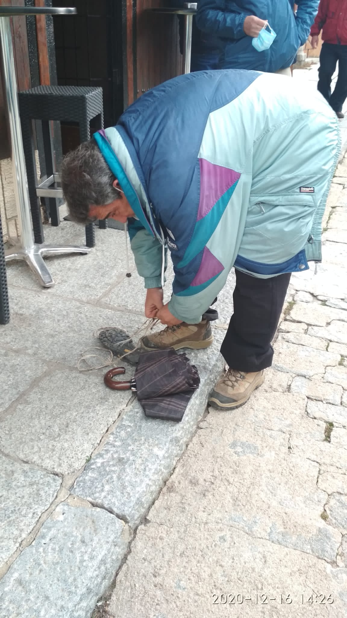 Poco después nos acercamos hasta los coches y regresamos a Segovia dando por concluida la andadura. Definitivamente, Paco se ha despegado totalmente la suela de la bota y la ha dejado en el coche para tirarla.