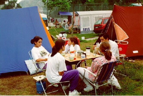 hicimos los trámites para que nos asignaran parcela, montaje de tiendas, etc.