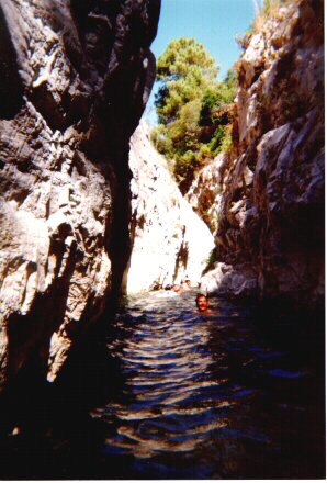 curso se estrecha bastante entre dos paredes de roca, ya que de una a otra había